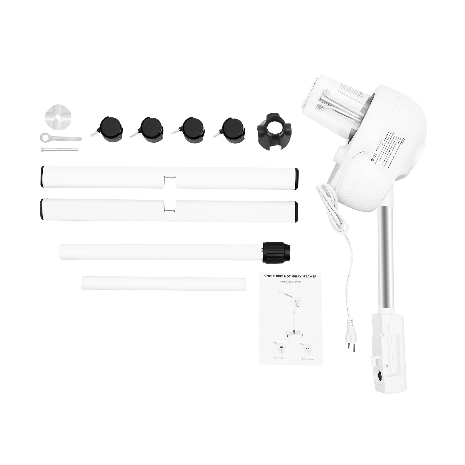 6. Assemble the corresponding holes at the bottom of the main body of the face steamer on the top of the metal rod to complete the assembly.