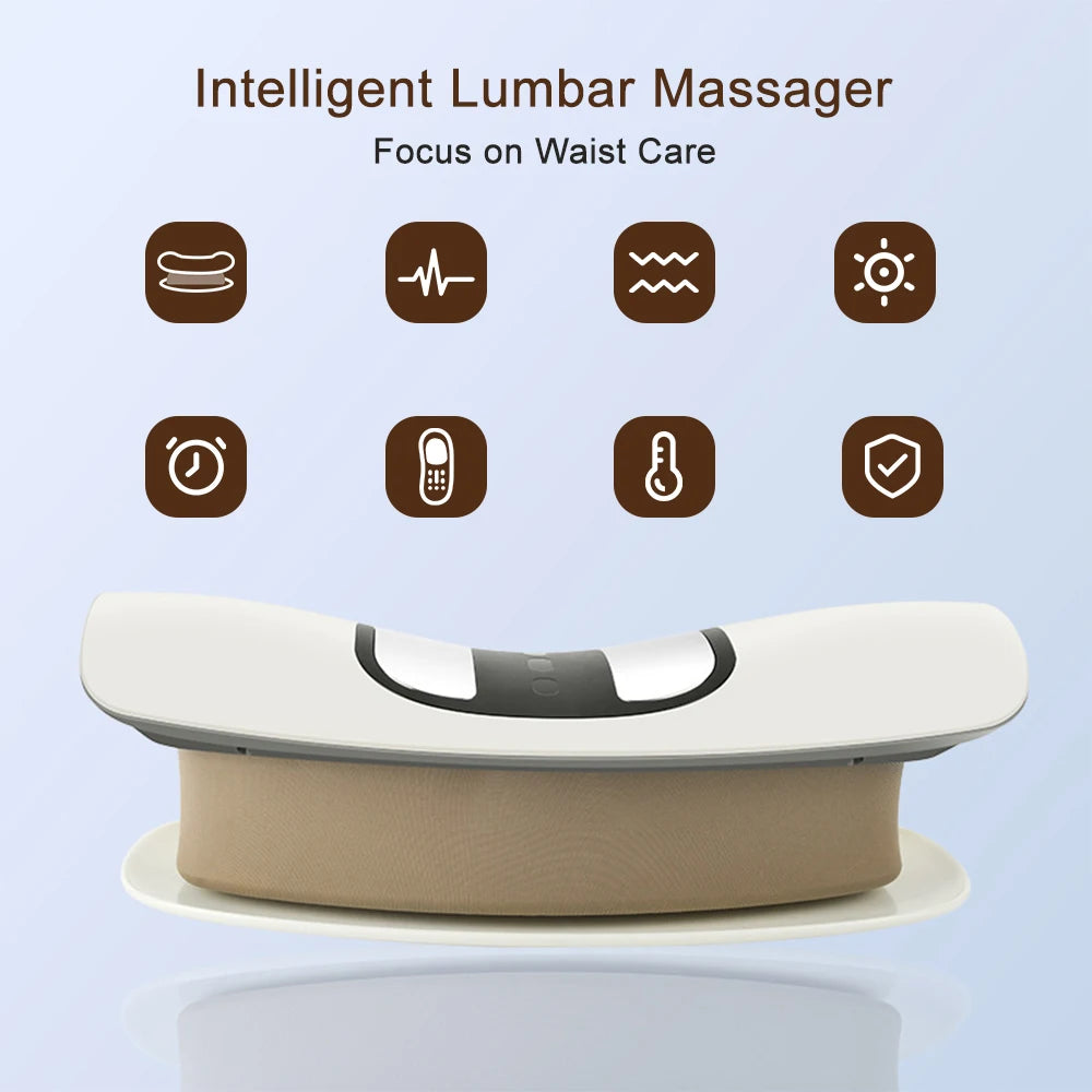Say goodbye to back pain! Our intelligent lumbar massager combines heat, vibration, EMS pulses, and infrared therapy to relax stiff muscles, boost circulation, and ease pressure on your lower back.